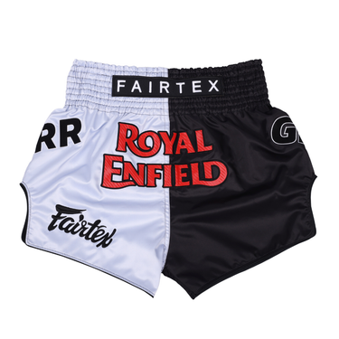 Built on the signature Fairtex Muay Thai shorts silhouette, this limited-edition piece combines authentic fightwear craftsmanship with the rugged, street-focused identity of Royal Enfield.