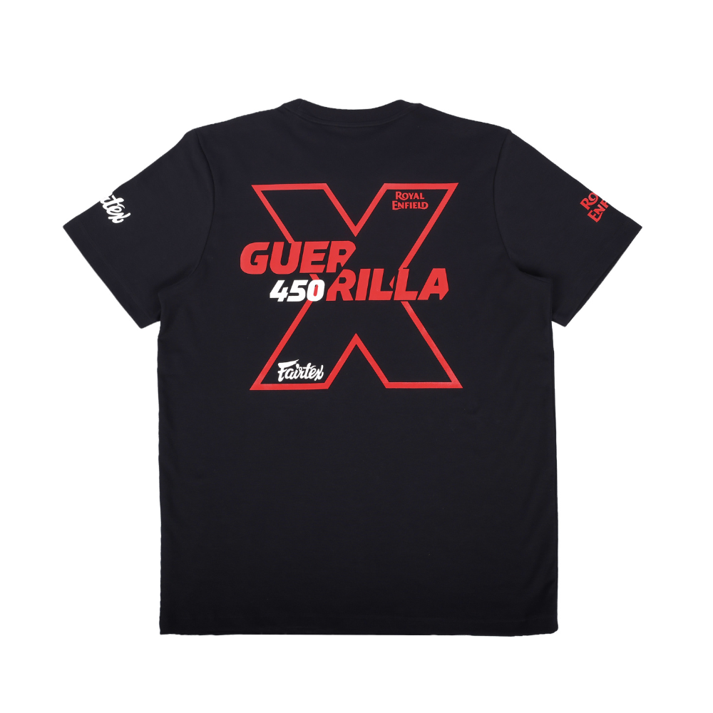 The Fairtex x Royal Enfield Limited Edition T-Shirt combines combat sports heritage with the bold DNA of the Guerrilla 450 APEX.